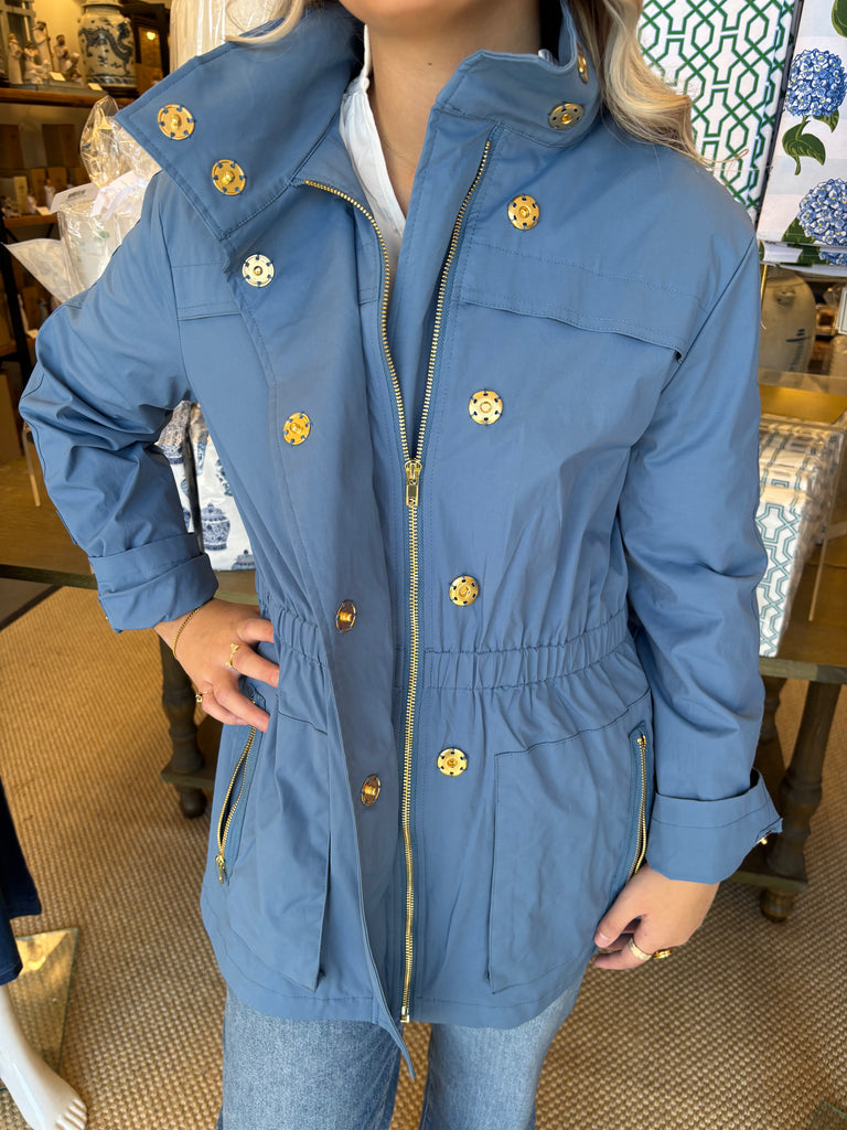 Tess French Blue Rain Jacket - S is backordered and will ship as soon as it is back in stock.