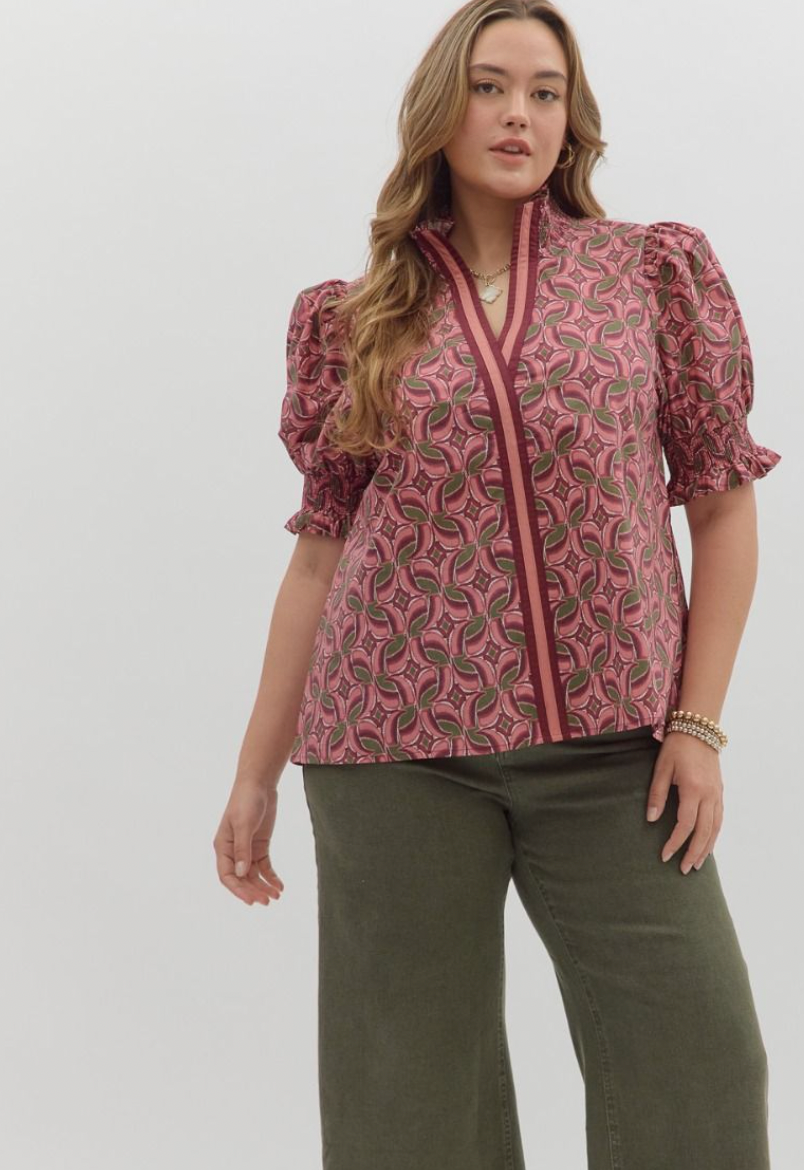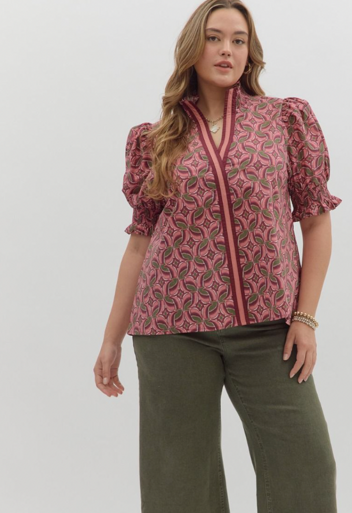 Wine Leaf Printed Top - XL is backordered and will ship as soon as it is back in stock.