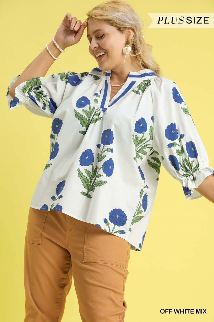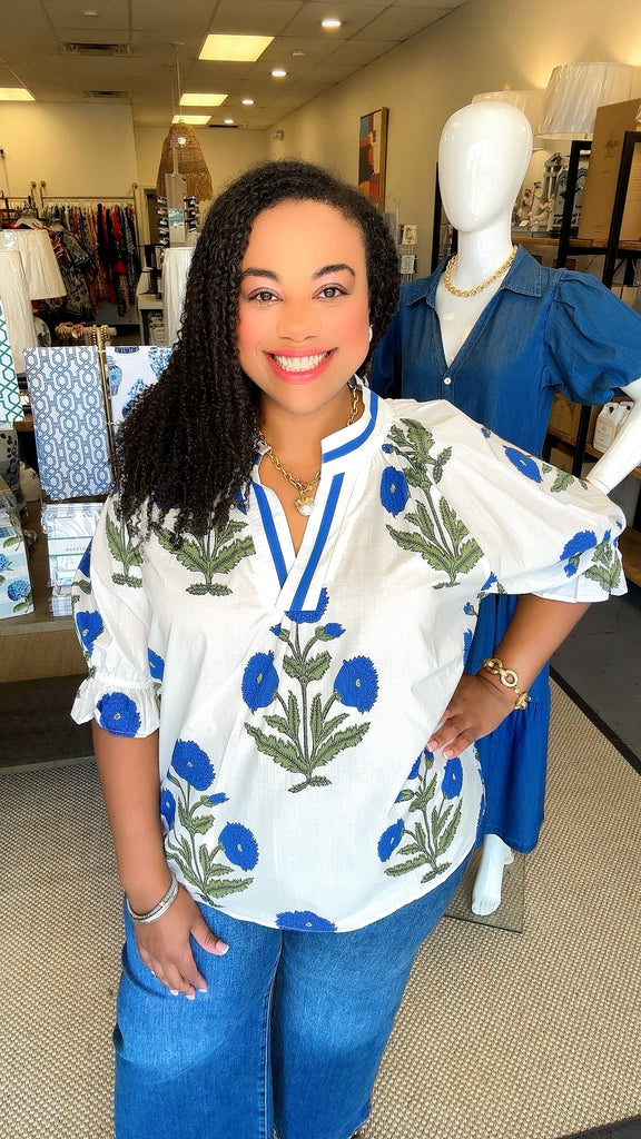 Blue Floral Blockprint Top - XL is backordered and will ship as soon as it is back in stock.