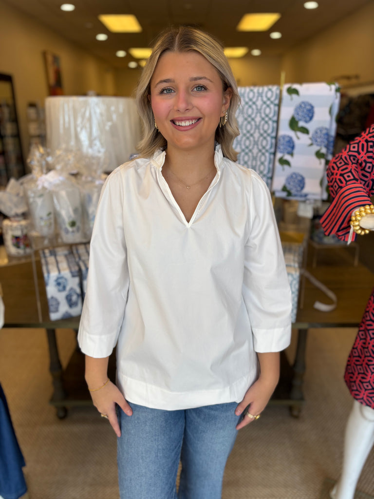 White Ruffled Neck Blouse