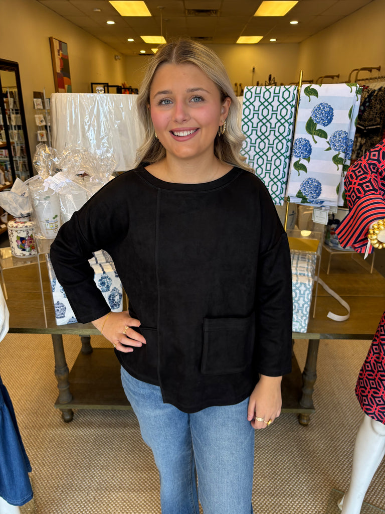 Black Vegan Leather Pocket Top