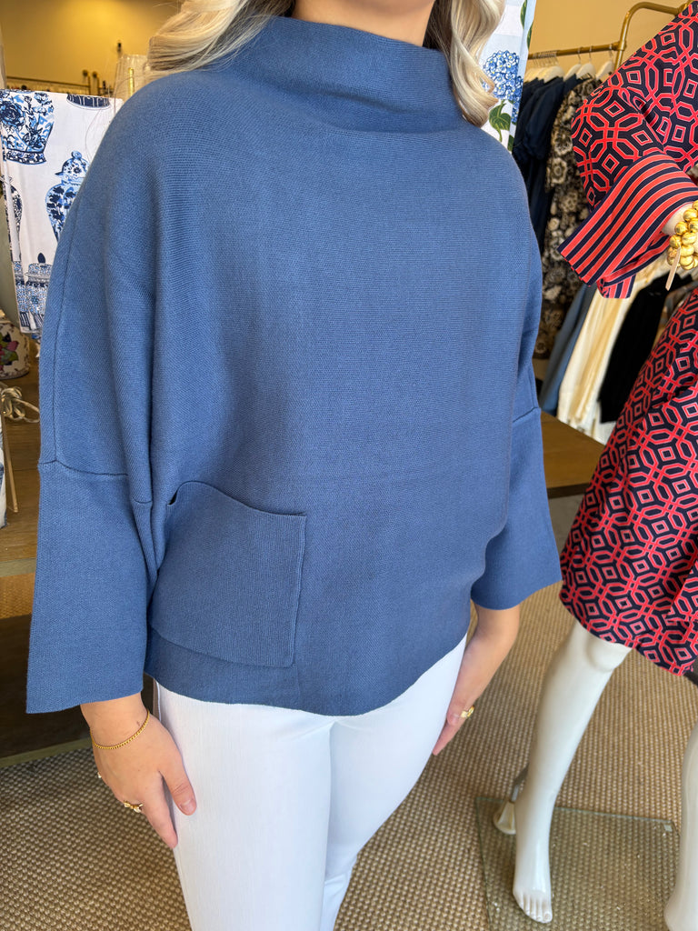 Denim Blue Mockneck Sweater - XS is backordered and will ship as soon as it is back in stock.